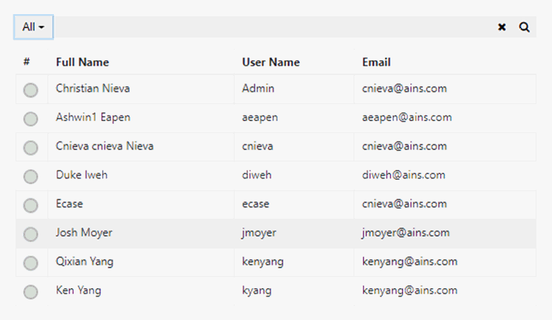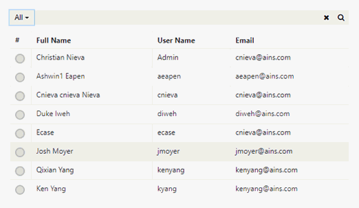 Click the Search icon to search for a user to serve as an alternate. An additional pop up window appears, displaying a list of the eligible assignees.