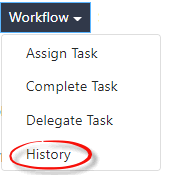 eCASE allows authorized users to view a history of assignments, completions, and delegations for an attachment. To view the workflow history for an attachment: